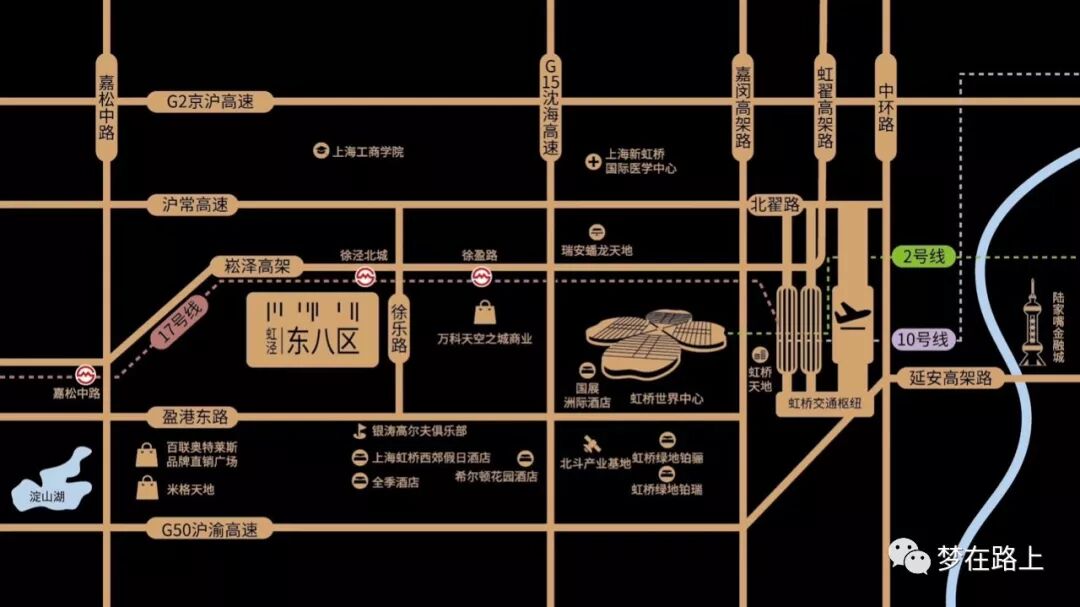 项目与地铁17号线徐泾北城站无缝对接,四站到达虹桥交通枢纽,对接地铁2号、10号线。北侧在建崧泽高架,在徐乐路规划有上下道口,距离虹桥交通枢纽直线距离仅约7.5公里。虹桥综合交通枢纽是世界上规模最大的交通枢纽之一,可实现长三角半小时-2小时经济圈,亚太3个小时经济圈。